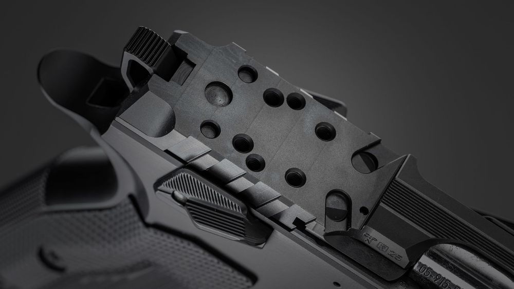 Även ergonomin är maximerad för dynamiskt skytte. Stommen är fräst ur ett enda stycke solitt stål och har fått djupare urgröpningar vid varbygel och beavertail, vilket tillåter ett mycket högt och rekylkontrollerande grepp. Pistolen levereras med stryktåliga G10-greppsidor, en omdesignad tumhylla (thumbrest) som eliminerar risken att tummen stör mantelns rörelse, samt en manuell säkring som matchar tumhyllans vinkel (25°) för perfekt handplacering. Magasinsspärren kan dessutom justeras i fem olika lägen för att skräddarsy dina blixtsnabba omladdningar. Det här är kort sagt ett renodlat tävlingsverktyg skapat för prispallen direkt ur lådan!