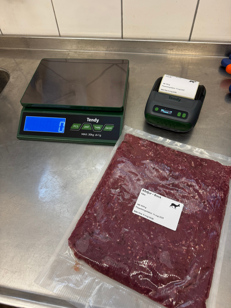 Libra kan tillsammans med Tendy Scriptor automatiskt skriva ut etiketter med funktionen “auto-print”. Det innebär att du bara behöver lägga till exempel vakuumpåsen med kött som Libra väger upp och sedan skickar information till appen att skriva ut direkt via Scriptor, helt utan att du behöver göra något manuellt. Funktionen “auto-print” har flera olika inställningar för att. Det går till exempel att ställa in känsligheten och hur länge vikten ska vara stabil innan utskrift. För att använda “auto-print” funktionen behöver du ha ett premium abonnemang.